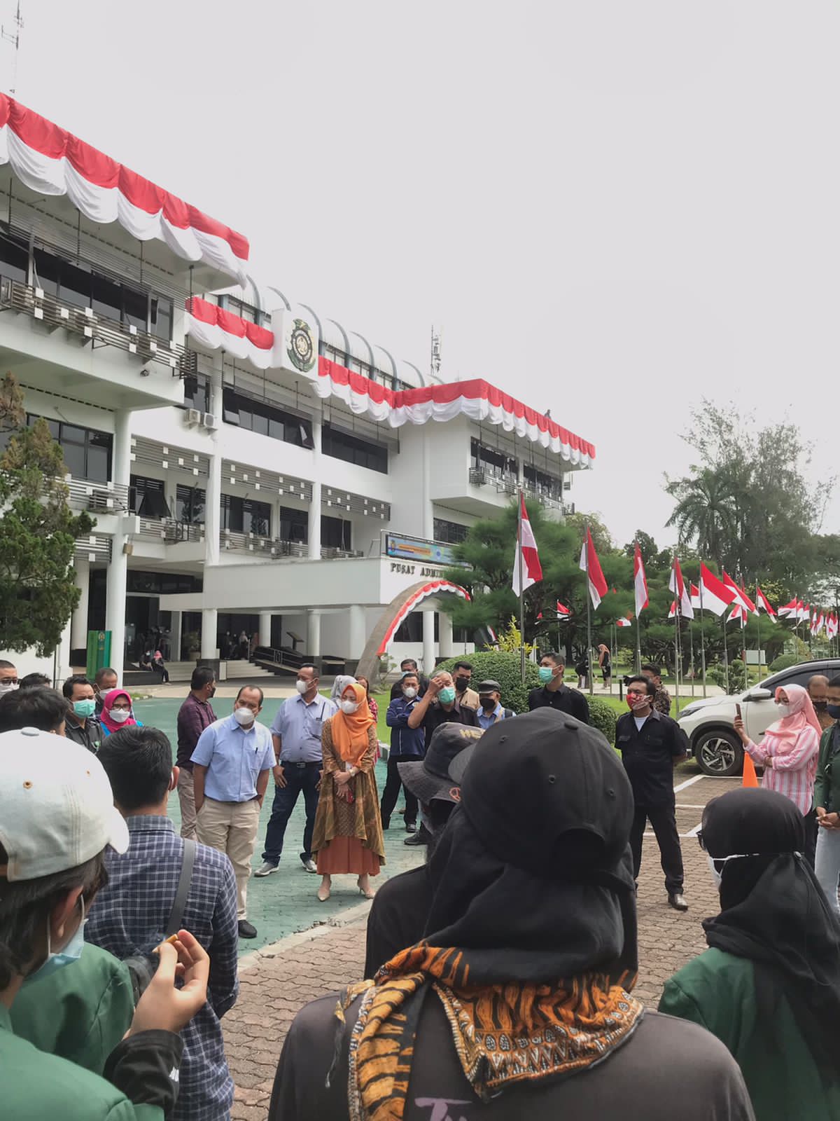 Suara USU, MEDAN. Belum gamblangnya realisasi bantuan SPP/UKT di Universitas Sumatera Utara menjadi keresahan di tengah-tengah mahasiswa. Buntutnya, pada Kamis 19 Agustus bertempat di Biro Rektorat USU, Pemerintahan Mahasiswa USU dan Aliansi Mahasiswa USU Bersatu adakan aksi.