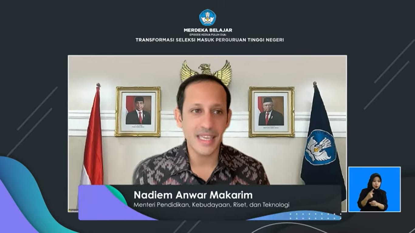 Suara USU. MEDAN. Kementerian Pendidikan, Kebudayaan, Riset, dan Teknologi (Kemendikbud Ristek), Nadiem Makarim mengumumkan kriteria baru Seleksi Nasional Masuk Perguruan Tinggi Negri (SNMPTN), Seleksi Bersama Masuk Perguruan Tinggi Negri (SBMPTN), dan Seleksi Mandiri. Ketiga seleksi tersebut, akan dilaksanakan dengan skema dan aturan yang berbeda dari tahun-tahun yang sebelumnya. Perubahan tersebut diumumkan Nadiem dalam channel Youtube Kemendikbud RI dalam peluncuran Merdeka Belajar Episode 22: Transformasi Seleksi Masuk PTN.