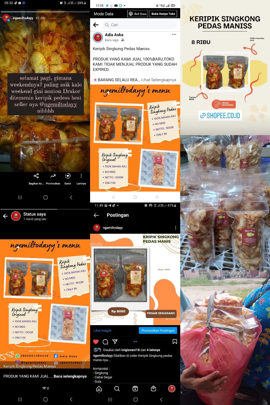 Owner juga memberikan sapaan kepada customer dengan unsur promosi melalui strory media sosial yang digunakan. Dengan demikian, segala konten yang diberikan owner dan pengoptimalan digital marketing yang digunakan dapat meningkatkan laju pertumbuhan usaha bisnis keripik Ibu Muliani.