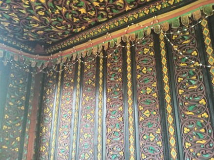 Seluruh dinding bangunan dihiasi oleh ornamen ukiran berwarna-warni yang secara total terdiri dari 58 jenis motif yang berbeda. Ukiran yang dominan di istana ini adalah ornamen ukiran bunga-bunga dan dedauan.
