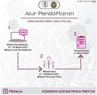 Berikut persyaratan dan alur pendaftaran LTPQ 2021 atau dapat dilihat di instagram @lptqusu.
