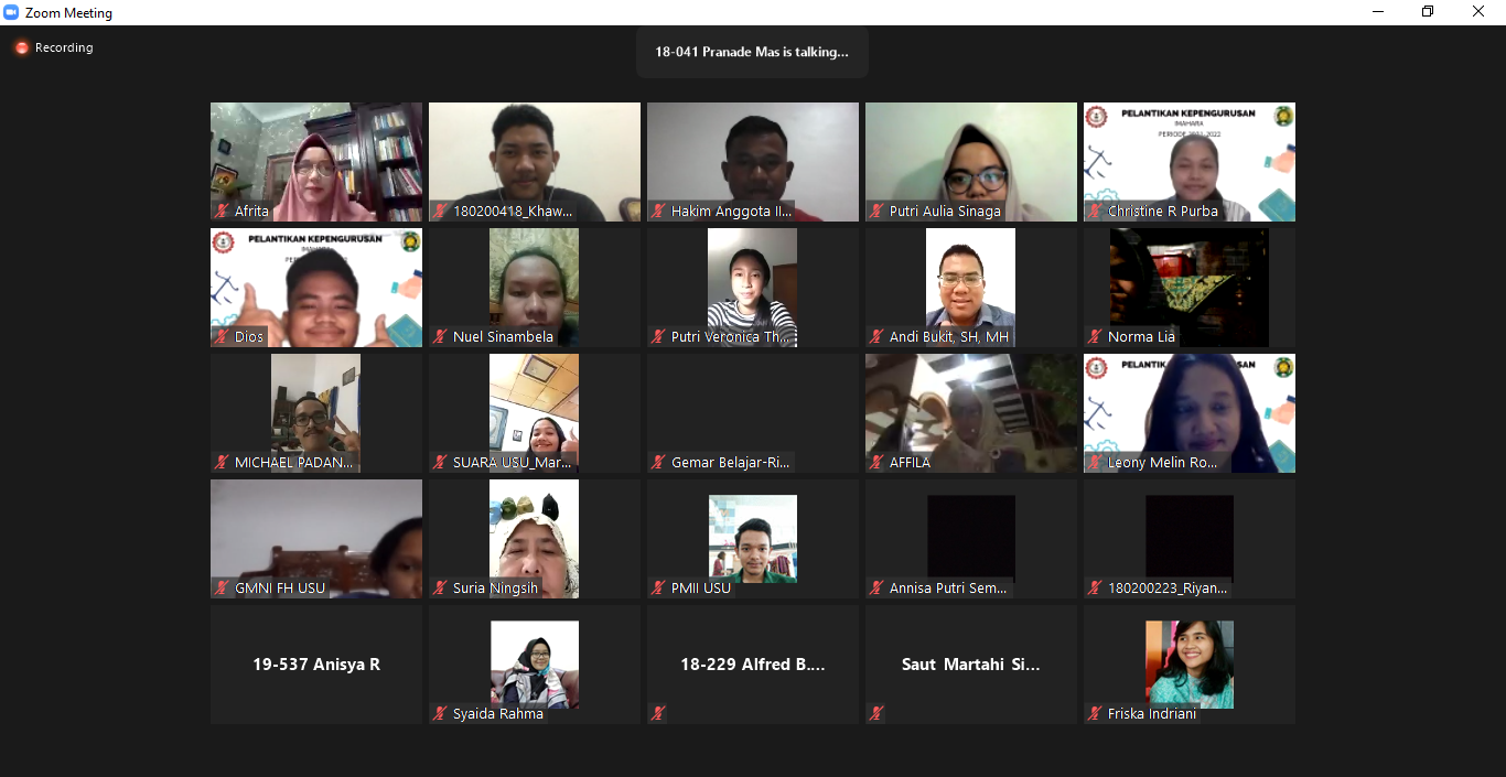 Pelantikan berlangsung melalui platform zoom meeting pada Selasa, (25/05/2021). Rangkaian acara pelantikan dimulai pukul 17.00 WIB dengan agenda Laporan Pertanggungjawaban (LPJ) masa jabatan 2020-2021 dan dilanjutkan pukul 19.30 WIB dengan Pelantikan Kepengurusan Baru 2021-2022 yang dipandu oleh MC Sherly Tjiatawi.