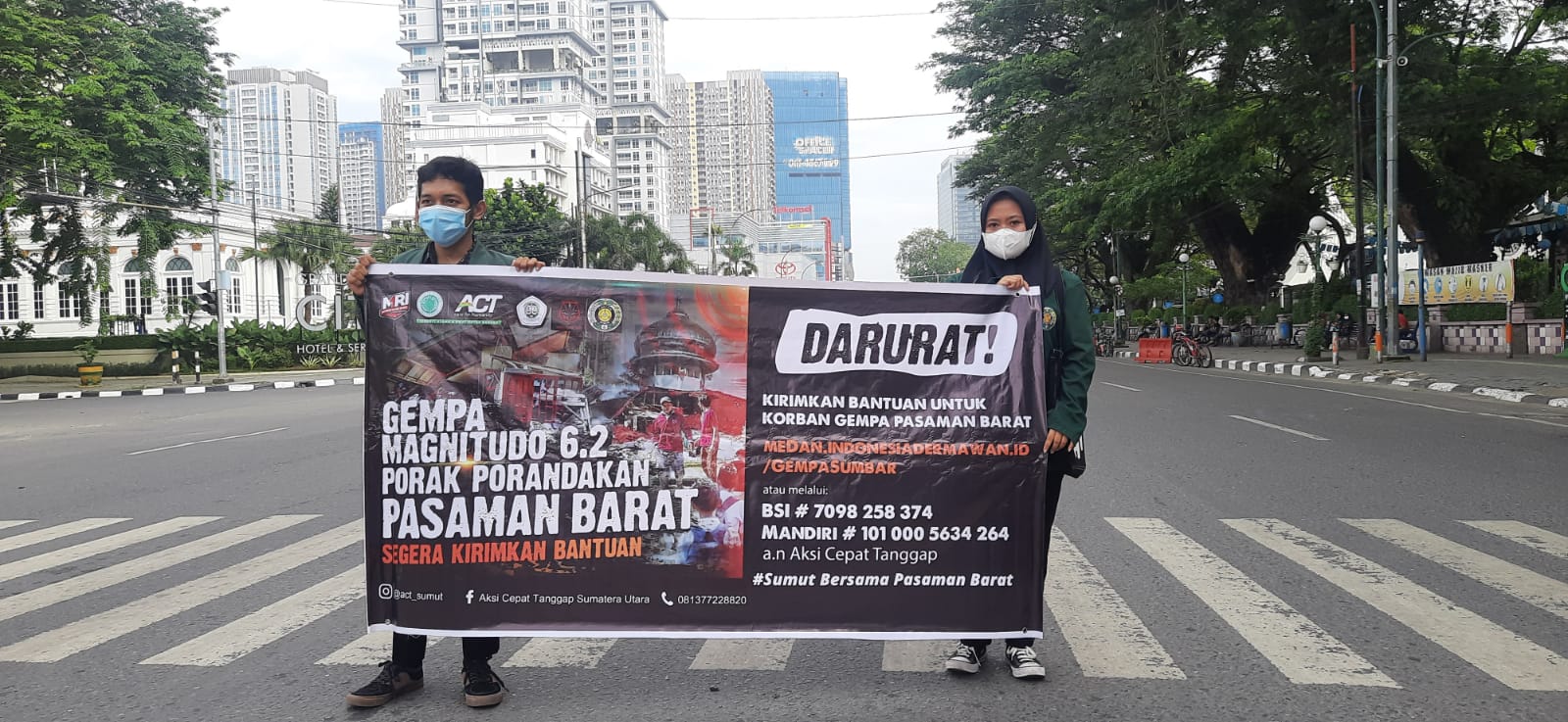 Reporter: Arnoldus Prima Naibaho/Farhan Muhammad IrsyadiSuara USU, Medan. PEMA FH USU telah berhasil melangsungkan aksi penggalangan dana untuk membantu masyarakat yang berkunjung pada musibah Gempa Pasaman Barat Aksi galang dana ini dilaksanakan pada Minggu (06/03) bertempat di Lampu Merah Merdeka Walk.Kegiatan ini diikuti oleh anggota PEMA FH USU dan Mahasiswa FH USU yang terbagi dalam dua sesi, yaitu sesi pertama dari pukul 08:00 sd 10.00 dan sesi kedua dari pukul 16:00 sd 18:20.Dalam melaksanakan aksi galang dana ini PEMA FH USU bekerja sama dengan Aksi Cepat Tanggap (ACT), yaitu organisasi nirlaba yang berfokus pada kerja-kerja kemanusiaan pada penanggulangan bencana mulai fase darurat sampai dengan fase pemulihan pasca-bencana. Kerja sama ini dilakukan agar lebih memudahkan mengirim hasil yang terkumpul kepada masyarakat yang menemukan bencana.Mauris Muyassar selaku Ketua Departemen Propaganda dan Aksi mengatakan bahwa pemberian bantuan pada kesempatan kali ini tidak hanya berbentuk uang saja.“Rencananya kami nanti juga akan mengalirkan bantuan berupa sembako kepada masyarakat pasaman dimana nanti kami akan mengalirkannya melalui ACT,” ungkap MaurisPenyaluran dana dari hasil donasi yang akan dilaksanakan akan diserahkan kepada pihak ACT satu sampai dua hari ke depan. Dana dari hasil donasi ini tidak terbatas berasal dari galang dana yang dilaksanakan di Lampu Merah Merdeka Walk, namun berasal juga dari dana yang diperoleh dari galang dana melalui transfer ATM atau e-wallet.“Karena kami melakukan aksi dana ini kolaborasi dengan ACT, berhubungan ini hari minggu di mana ACT tutup, maka kemungkinan kami akan menyerahkannya pada hari senin atau selasa,” tambahnya.Mauris berharap agar kita kedepannya lebih meningkatkan rasa kemanusiaan bagi korban bencana.“Saya berharap kepada kita harus menumbuhkan rasa untuk sesama kita, kita juga memiliki rasa empati bagi korban gempa atau musibah lainnya," tutup Mauris.Redaktur: Yessica Irene