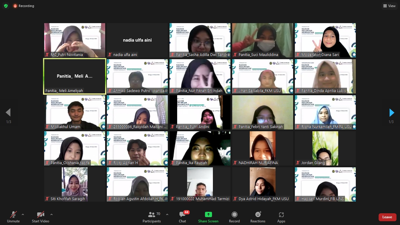 Suara USU, MEDAN. UKMI Al-Ishlah Fakultas Kesehatan Masyarakat USU baru saja menggelar Kajian Keilmuan Kesehatan Masyarakat (K3M) pada Minggu (20/3). Webinar ini dilaksanakan melalui Zoom Meeting dengan mengusung tema “Dampak Kekerasan Seksual dan Bullying terhadap Remaja”.